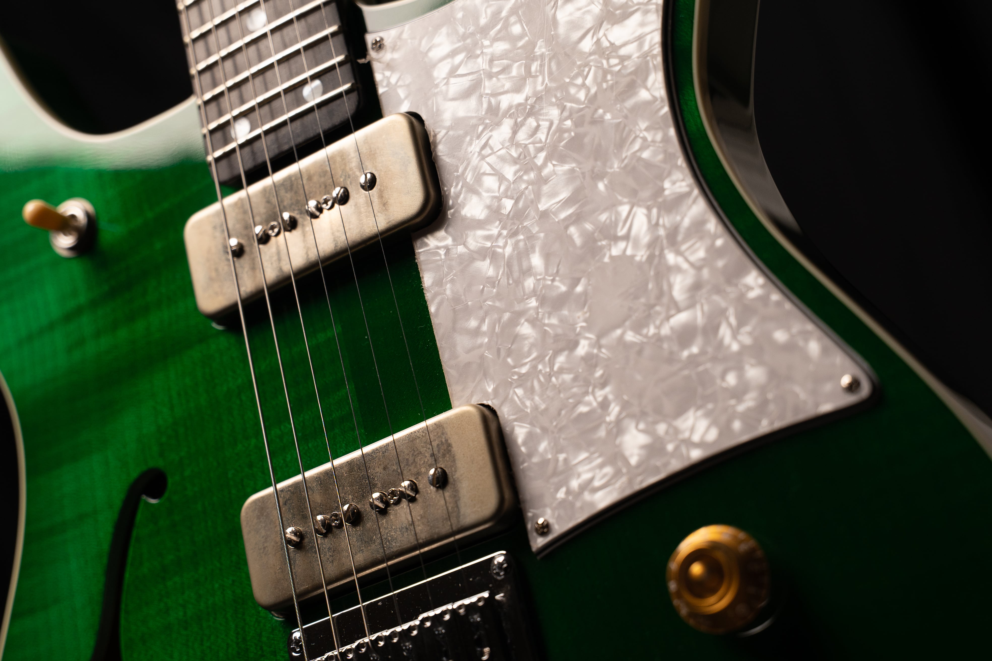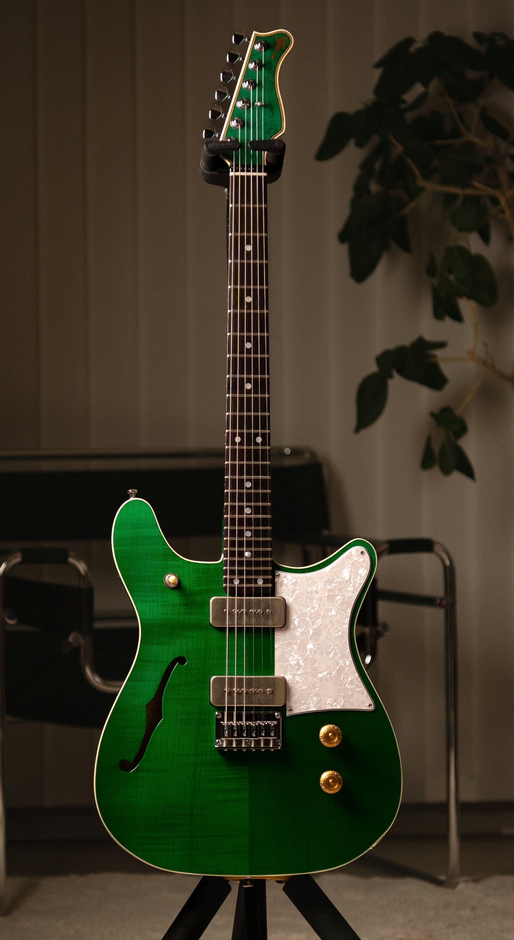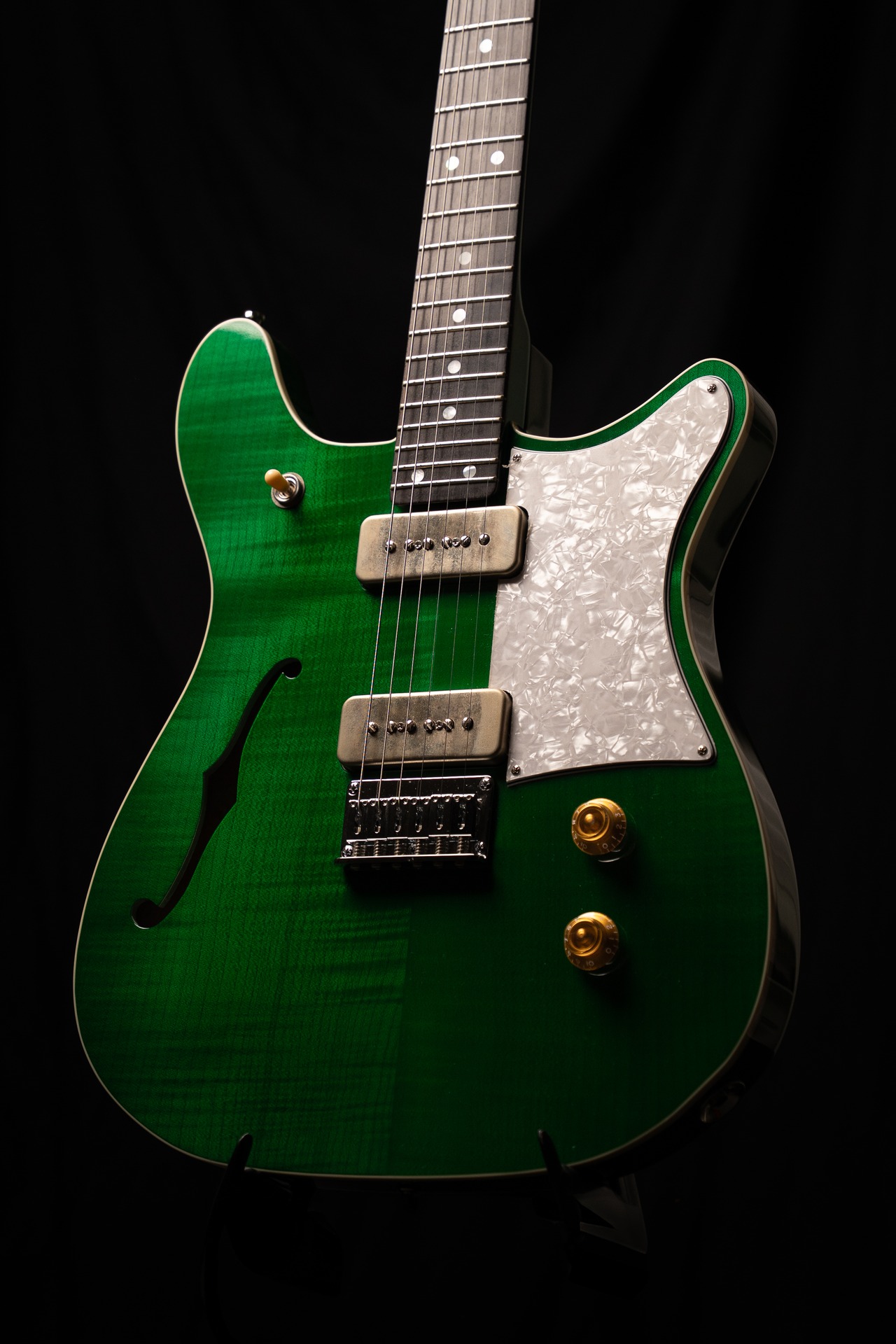 レコーディング用のサブギターとしても扱いやすく、ピックアップの個性とセミホロウ構造の響きが絶妙に共存しています。