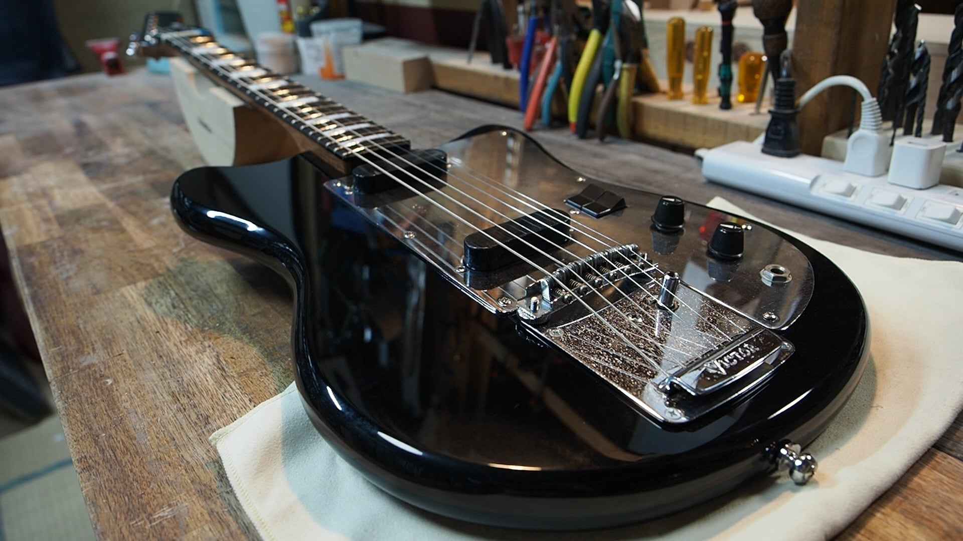 ロングスケール構造によりピッチの安定性も高く、60年代のビザールギターの中でもデザイン性と実用性を兼ね備えた稀有な存在といえます。